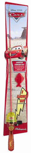 Shakespeare Spincast Combo Fishing Kit Cars Features: 2'6" all-in-one rod and reel with line Practice casting plug Lights flash when thumb button is pressed Officially Licensed Contents: Practice Casting Plug Rod & Reel Combo