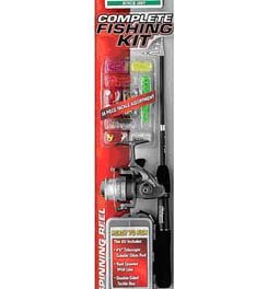 Complete telescopic spinning kit.4 ft. 6 in. light action telescopic rod.Graphite spinning reel with line.Utility box.102 piece tackle assortment.
